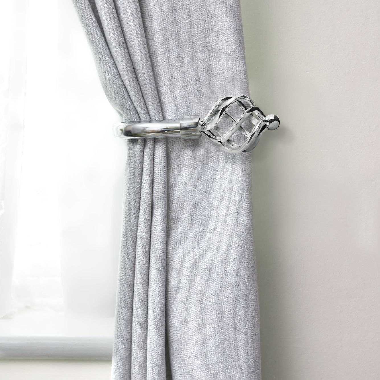 Chrome Bird Cage Curtain Holdbacks (Pair)