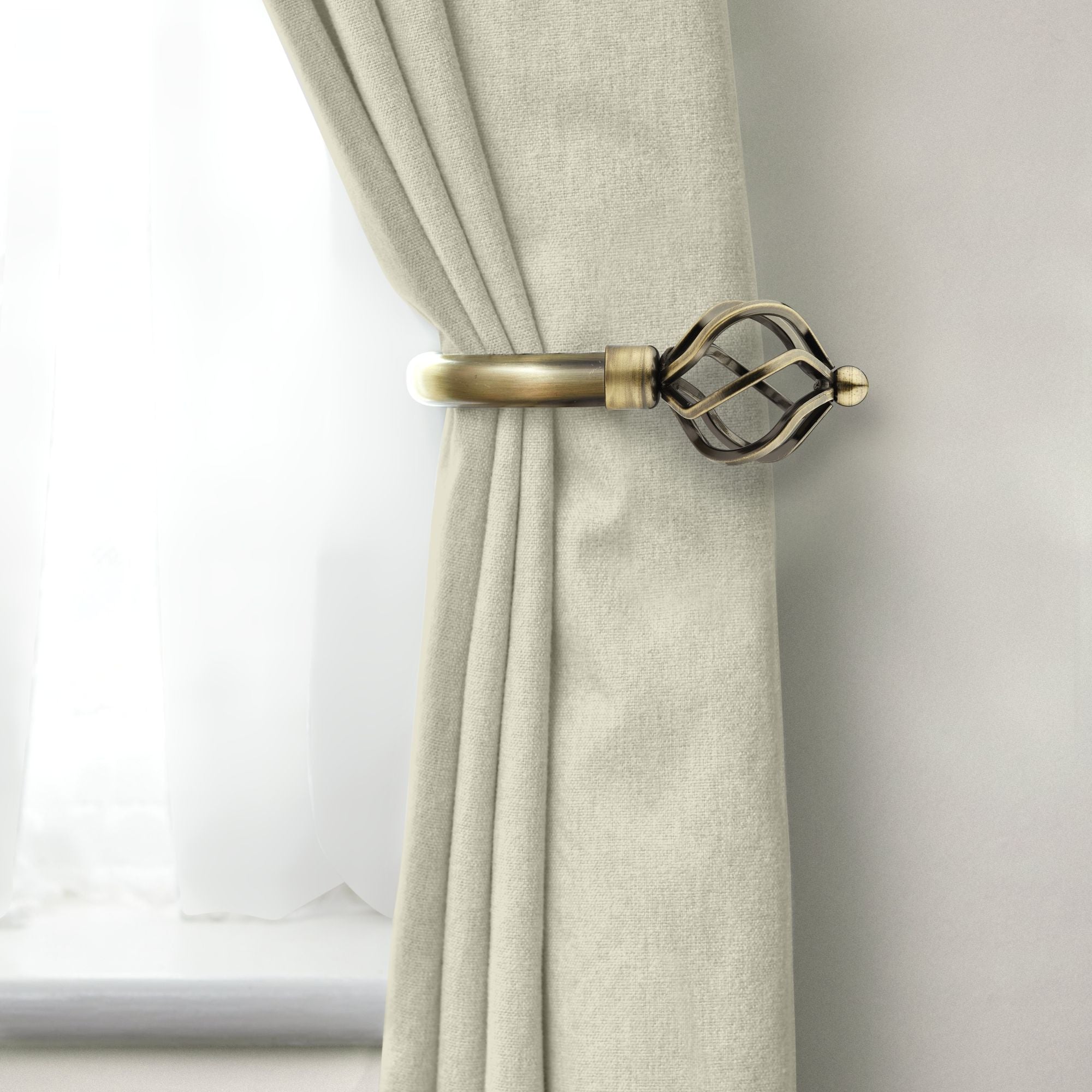 Antique Brass Bird Cage Curtain Holdbacks (Pair)