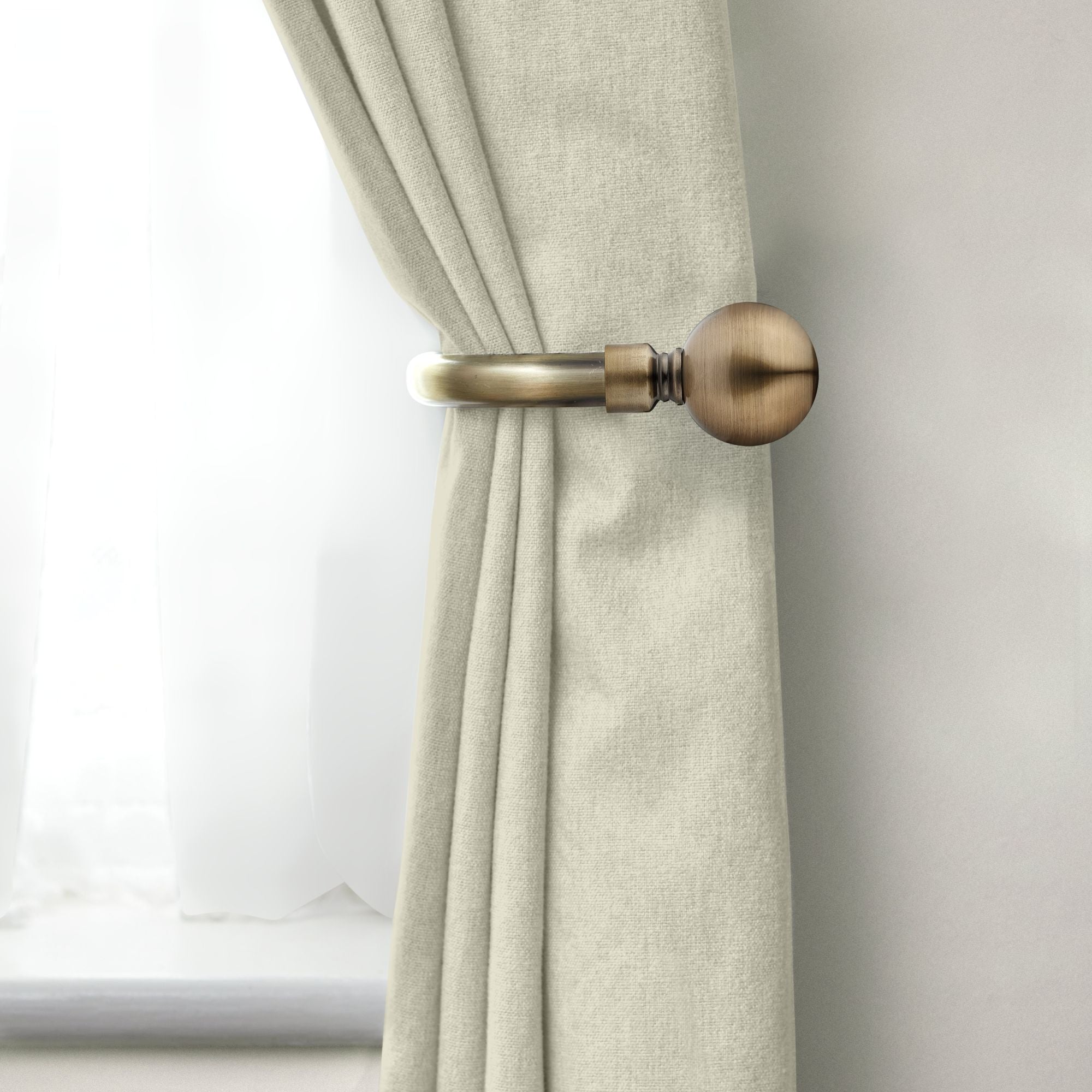 Antique Brass Ball Curtain Holdbacks (Pair)